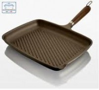 Linea completa di padelle, pentole, bistecchiere e casseruole, realizzata in alluminio pressofuso per alimenti e rivestita di un triplo strato antiaderente, consente di cucinare in modo naturale e senza grassi.
