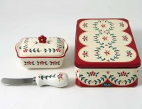 Scatola di latta cm 21×13,5×6,5 h con ciotola con coperchio cm 12,8×8,6×7,5 h e spalmatutto