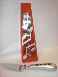 Pala docle musicale in acciaio inox e manico rosso.