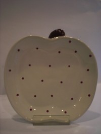 Piatto a forma di mela in porcellana bianca e pois rossi