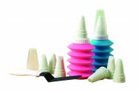 Set di n. 11 pezzi per la decorazione dolci (2 dispenser decoratrici con tappo, 8 bocchette per decorare, 1 spatolina).