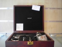 Set per vino comprendente: cavatappi per vino, cavatappi per spumante, apribottiglie, 2 salvagoccia, 2 tappi per vino, un tappo per spumante e 6 segna bicchiere.